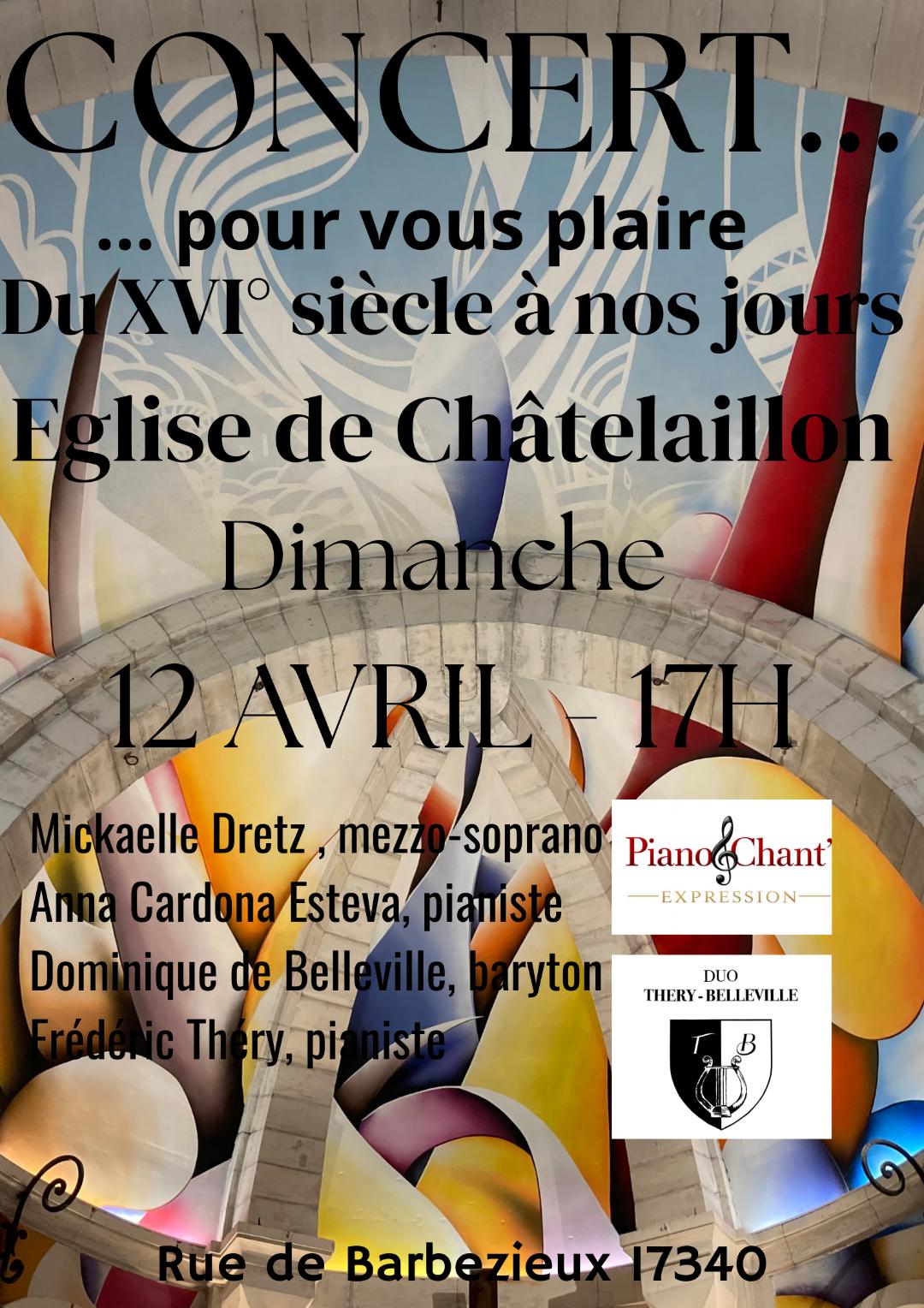 "Concert pour vous plaire, du XVI° siècle à nos jours", takes place on April 12, at 5pm at the Châtelaillon-Plage church! The church will host an exceptional concert by four talented artists, featuring a rich and varied musical program!
