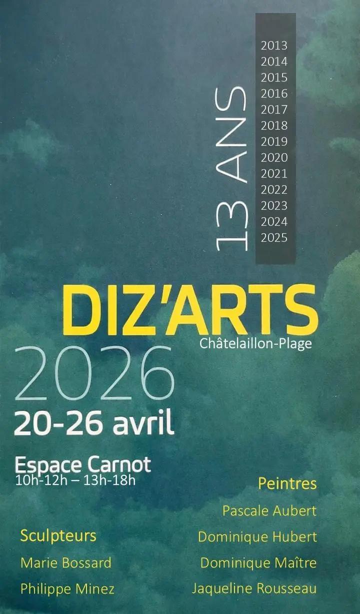 Les 5 artistes peintres et sculpteurs de Diz'Arts exposent à l'Espace Carnot de Châtelaillon-Plage.